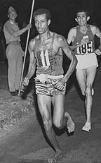 – Λίγες ώρες πριν την αναχώρηση του αεροπλάνου που θα μετέφερε την Ολυμπιακή ομάδα της Αιθιοπίας στη Ρώμη, το 1960, η ομοσπονδία της χώρας δήλωσε ως αντικαταστάτη του μαραθωνοδρόμου Γουάμι Μπιράτου (που είχε σπάσει τον αστράγαλό του παίζοντας ποδόσφαιρο), τον Αμπέμπε Μπικίλα. Ήταν η αρχή του μύθου. Η Adidas, χορηγός της ομάδας, έδωσε στον Μπικίλα να δοκιμάσει όσα από τα λιγοστά παπούτσια της είχαν περισσέψει (!), αλλά κανένα δεν του ταίριαζε, έτσι αποφάσισε να τρέξει ξυπόλητος, όπως άλλωστε συνήθιζε να προπονείται στη χώρα του! Πριν τον αγώνα, οι συμπατριώτες του τον προειδοποίησαν ότι βασικότερος αντίπαλός του ήταν ο Μαροκινός Ράντι Μπεν Αμπντεσελάμ, που φορούσε το νούμερο 26, χωρίς να γνωρίζουν, όμως, ότι ο Ράντι θα έτρεχε με το νούμερο 185. Ο Μπικίλα ξεκίνησε τον αγώνα προσπερνώντας πολλούς στην αναζήτησή του για το νο.26 και βρέθηκε πρώτος, μαζί με τον Ράντι, κοιτώντας γύρω του για να βρει τον αριθμό 26, χωρίς να ξέρει ότι, στην πραγματικότητα, αυτός έτρεχε δίπλα του! Τελικά, με ένα παρατεταμένο σπριντ κέρδισε με… 26 δευτερόλεπτα διαφορά και έγινε ο πρώτος Αφρικανός που κέρδισε ποτέ χρυσό Ολυμπιακό μετάλλιο! Ταξίδεψε, 4 χρόνια μετά στο Τόκιο, έχοντας υποβληθεί σε εγχείρηση για οξεία σκωληκοειδίτιδα, 1 μήνα πριν τους Αγώνες. Κανείς δεν περίμενε να αγωνιστεί, εκτός από τους γιατρούς του, που τον είδαν, νύχτα, να κάνει τζόκιν στην αυλή του νοσοκομείου που νοσηλευόταν! Φορώντας παπούτσια αυτή τη φορά, κατάφερε να γίνει ο πρώτος αθλητής που κέρδισε δύο μαραθώνιους και να εδραιωθεί στη συνείδηση του κόσμου ως μία από τις σημαντικότερες μορφές των Ολυμπιακών Αγώνων όλων των εποχών. Ο «ξυπόλυτος θεός της Αφρικής», χτυπημένος από τη μοίρα, πέθανε από εγκεφαλική αιμορραγία σε ηλικία 41 ετών, το 1973, επιπλοκή ενός αυτοκινητικού ατυχήματος που τον είχε αφήσει παραπληγικό 4 χρόνια νωρίτερα. Λίγο πριν δήλωνε: «μπορώ να δεχθώ και τις νίκες και την τραγωδία ως γεγονότα της ζωής μου και να ζήσω χαρούμενος»…