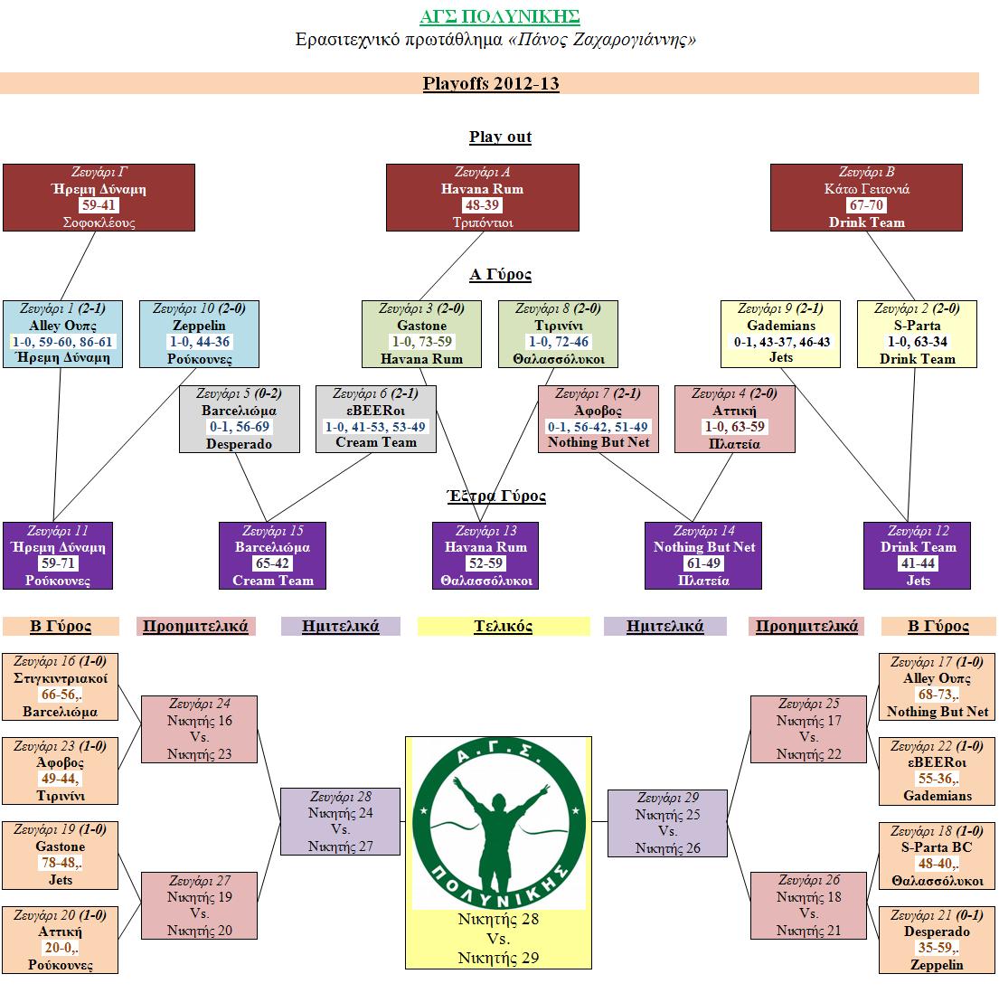 Zeppelin (Τσαντζαλής Θ.): Παπαδάτος Χ. 20 (4), Ρήγας Γ. 6, Μαρινάκης Α. 5, Κουτσός Α. 6, Θωμάς Θ. 1, Τσαντζαλής Θ. 12 (2), Αντωνίου Μ. 9 (1).